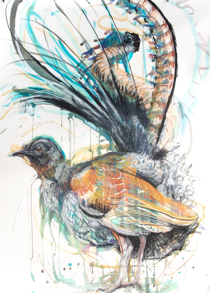 Superb Lyrebird_160by114_22June19 October 9, 2019 2160 × 3005 in Australian Birds Superb Lyrebird, watercolour, ink and charcoal on paper, 160 by 114cm, 2019 Like Loading...