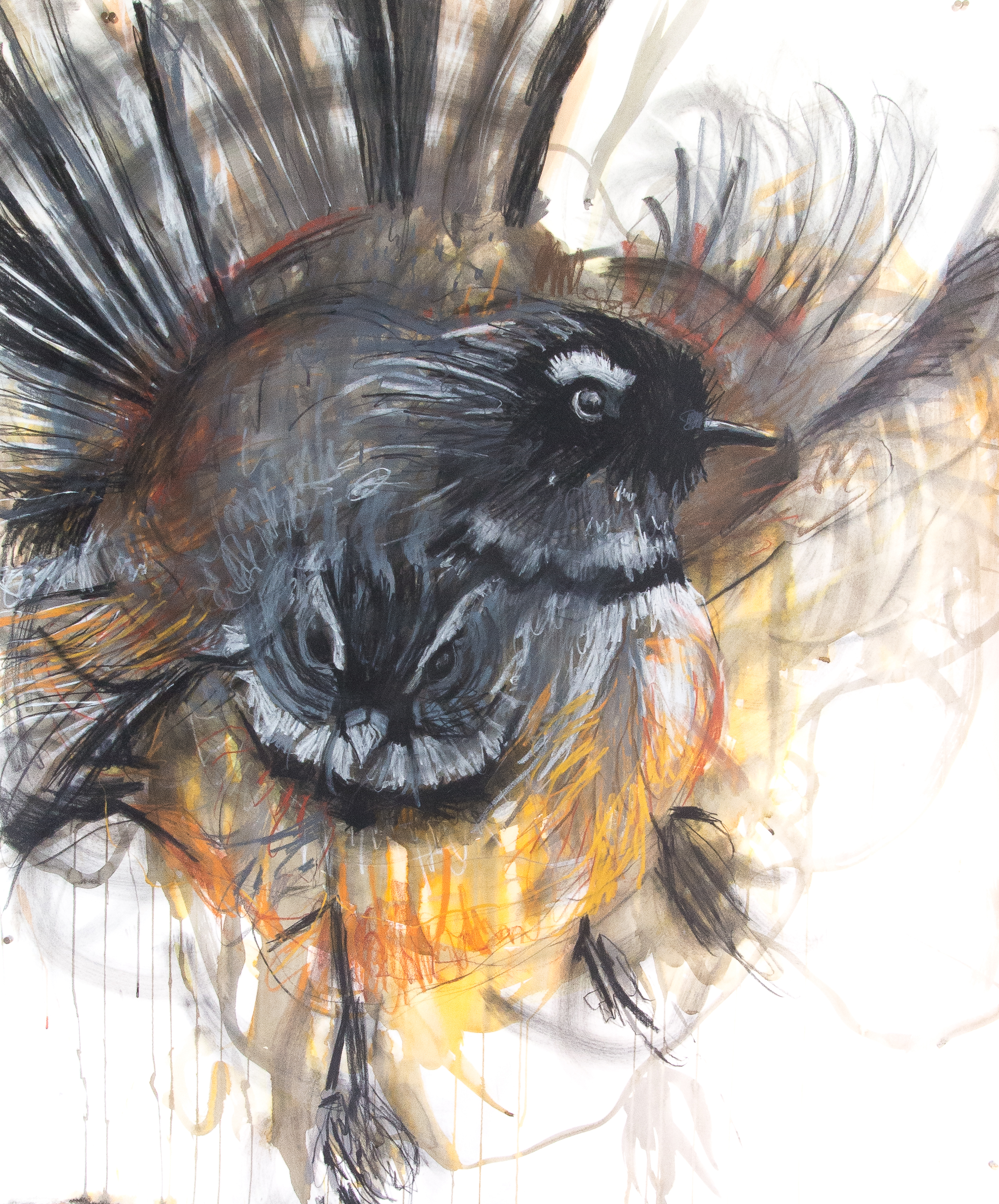 Fantail in flight 3, watercolour, ink and charcoal on paper, 127 by 108cm, 2018 June 6, 2018 2157 × 2600 in New Zealand Birds Fantail in flight 3, watercolour, ink and charcoal on paper, 127 by 108cm, 2018 Like Loading...