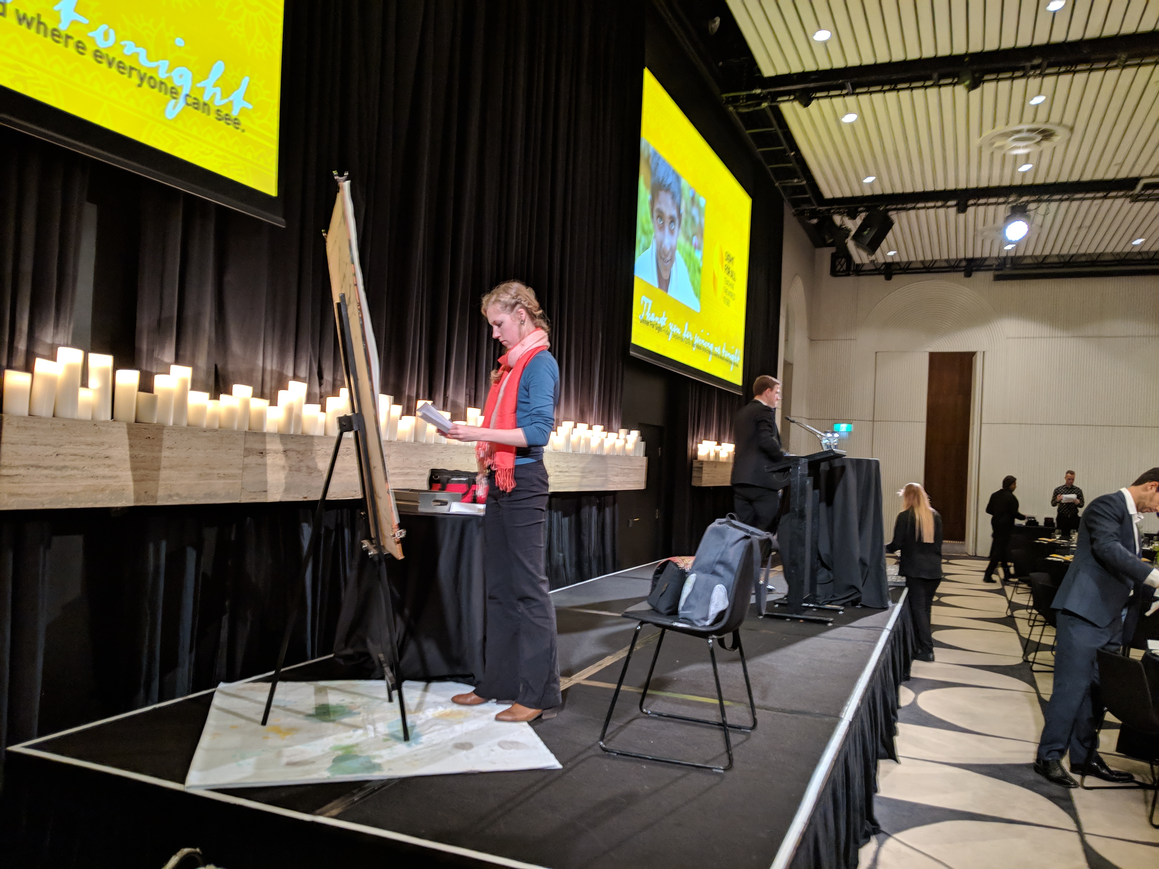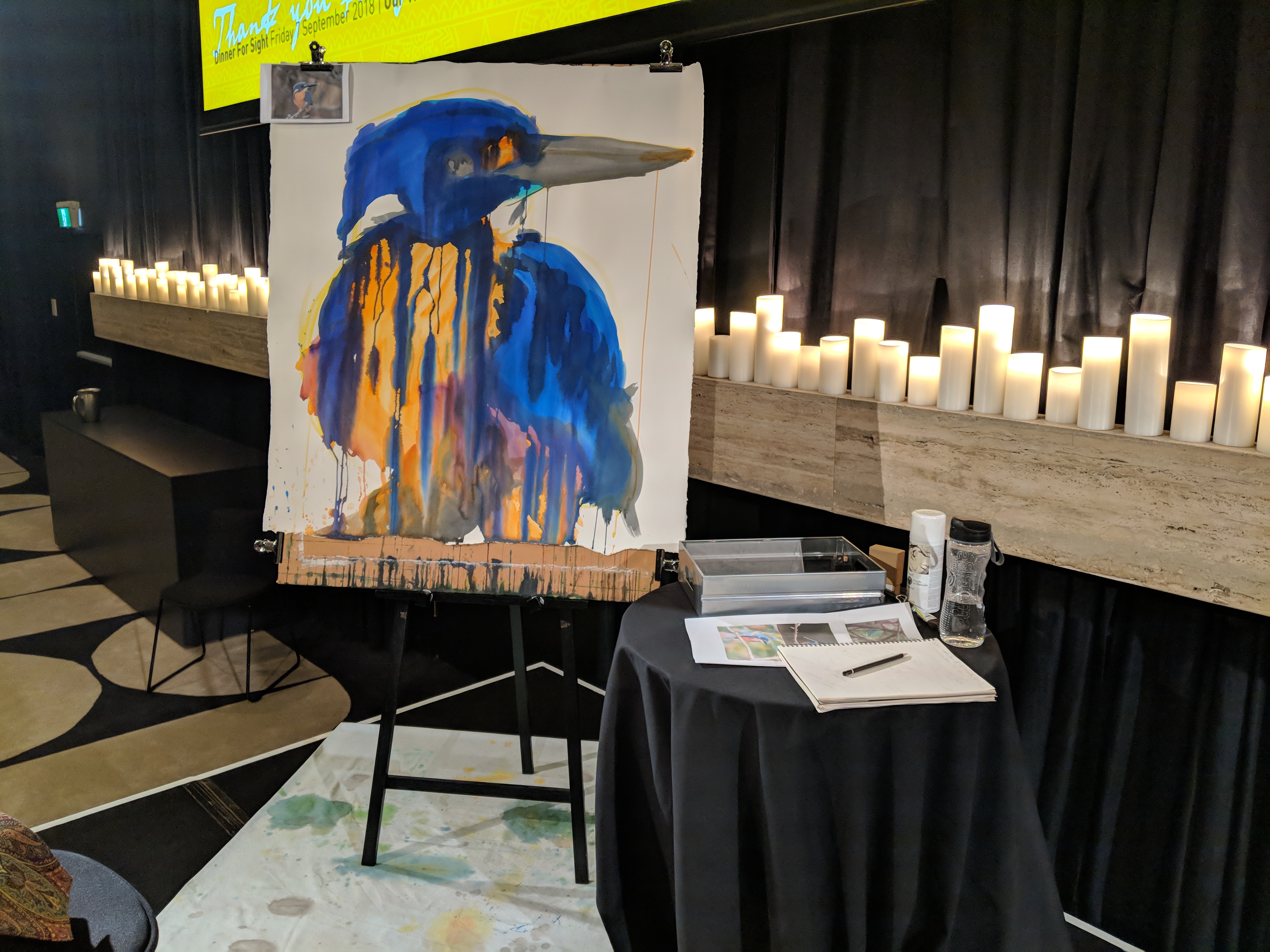 Last week on Friday night I was invited to create a “live artwork” for the dinner guests of the Sight For All charity fundraiser. Before dessert, my artwork ensued a bidding war (maybe not a war…) and was auctioned off for $4500! With all proceeds going to the charity, which provides medical training and assistance with medical issues in Sri Lanka. I was very chuffed. When I first arrived I was very nervous, as I found out I would be working Infront of 200 people, but as I kept working I felt more relaxed and eased into the swing of things. I’m really happy with the final artwork and have been told it has gone to a good home. Thankyou to @sightforall and @mcontemporary for the opportunity!